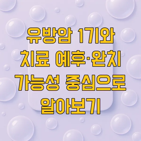 유방암 1기 진단을 받으셨다면, 가장 궁금한 점 중 하나가 바로 " 완치 가능성 "일 겁니다. 저 또한 그랬으니까요. 암이라는 단어 자체가 주는 두려움 때문에 완치라는 단어가 더욱 간절하게 느껴지는 건 어쩔 수 없는 것 같습니다. 하지만 1기 유방암 은 다른 병기에 비해 완치 가능성이 매우 높은 편 에 속하며, 적극적인 치료 를 통해 충분히 긍정적인 결과를 기대할 수 있습니다.