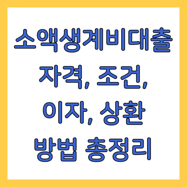 키워드: 소액생계비대출, 서민금융진흥원, 대출 자격, 대출 조건, 대출 이자, 대출 상환, 저소득층 대출