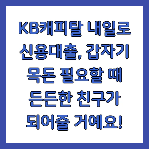 KB캐피탈 내일로 신용대출, 갑자기 목돈 필요할 때 든든한 친구가 되어줄 거예요!